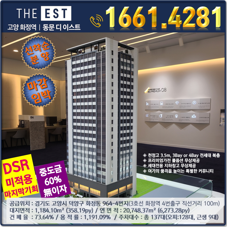 고양 화정역 도보1분 초역세권 주거용 오피스텔 동문 디이스트 선착순 분양 모델하우스 방문예약 접수처